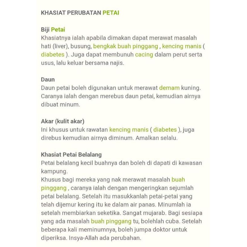 Petai belalang sejenis tumbuhan hutan liar senang didapati. Namun, ada sesetengah orang yang sangat menggemari petai. Khasiatnya ialah apabila dimakan dapat merawat masalah hati (liver),busung, bengkak buah pinggang, kencing manis (diabetes).juga. You are here anda semua pasti mengenal bahwa petai (pete) sebagai buah yang membuat bau mulut dan bau kentut sangat tidak sedap. Ia adalah antara tumbuhan pemberi sumber protein terbaik untuk makanan lembu, dimakan segar, muda, matang, hijau ataupun kering.