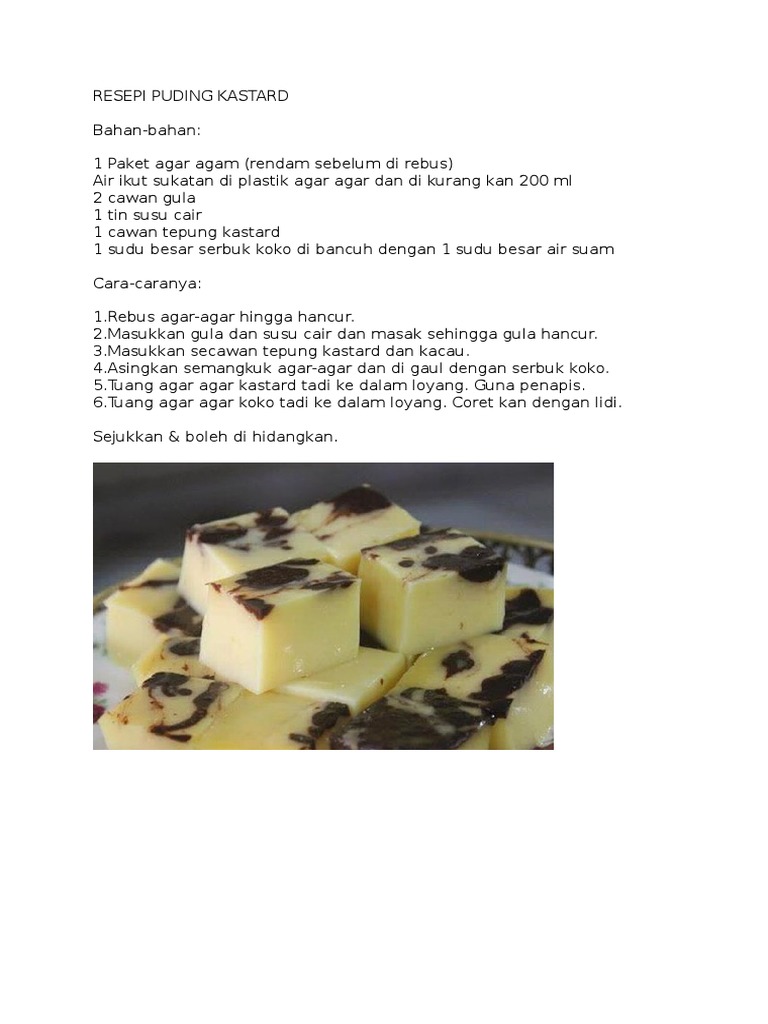 Inilah resep saya untuk puding. Resepi puding kastard berkuah tanpa telurmeh akak lanje resepi dessert sodap yang nyaman lalu ikut tekak.bahan puding:1/2 cup tpg kastard2 1/2 cup air1/2 cup. Sudah gak sabar dengan resep pusing custard mangga ini? 12 sudu besar tepung kastard (sukatan membukit). Sudah pastinya, puding roti menjadi salah satu pilihan sebagai juadah minum petang atau.